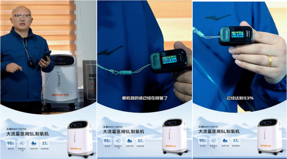 測試開始前,李總使用便攜式血氧儀記錄下基礎血氧飽和度,數值極低,反映了高原環境對人體的影響。隨后,他佩戴好鼻氧管,啟動永康制氧機,開始實時吸氧檢測實驗。整個過程被全程錄像,確保測試的真實性和透明度。令人振奮的是,短短一分鐘后,他的血氧飽和度有了顯著提升。這一立竿見影的效果,直觀展現了永康制氧機和多功能車載制氧機在提供高效氧氣補充方面的卓越性能。